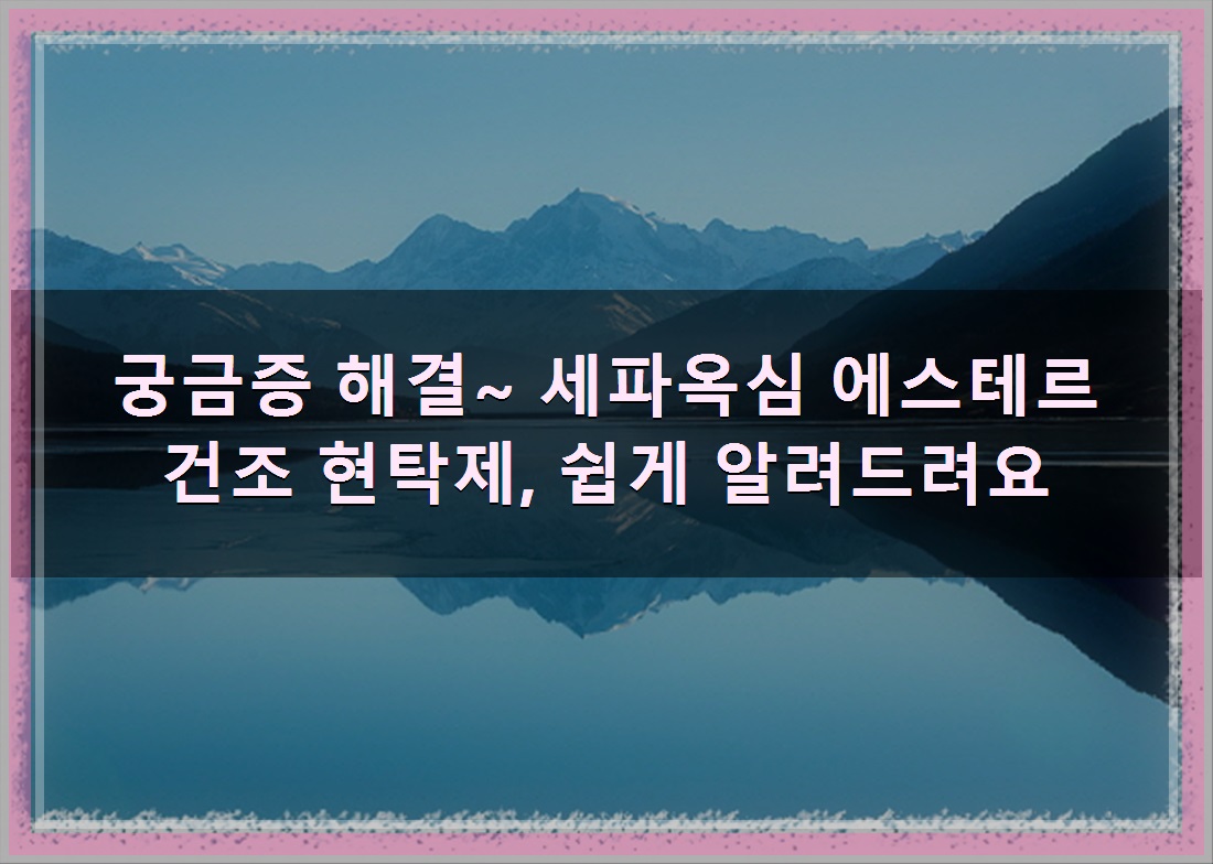 정리드린 내용은 궁금증 해결~ 세파옥심 에스테르 건조 현탁제, 쉽게 알려드려요 관련입니다. 좋은 내용이 되셨길 바랍니다.
